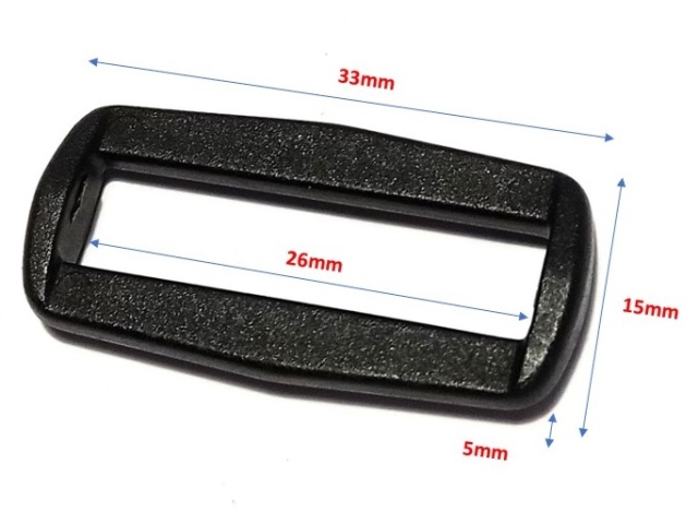 Boucle d'anneau rectangulaire en plastique pour sangle de sac de transport ou gilet de stabilisation.