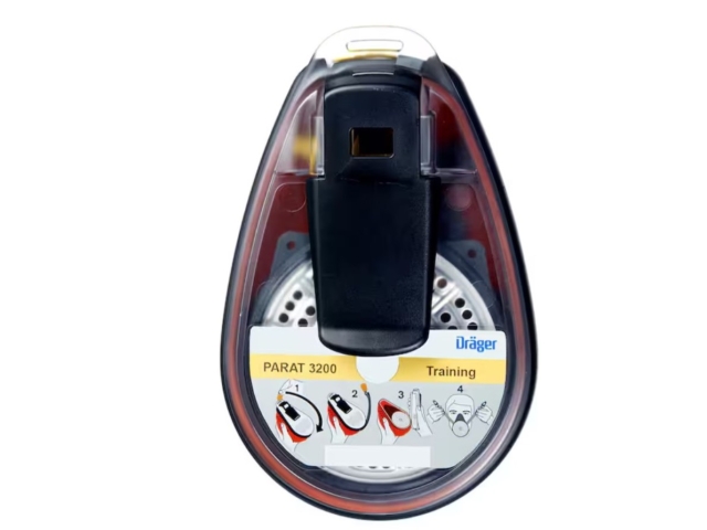 Le Draeger PARAT 3260 est un dispositif d'évacuation à embout buccal / pince nasale équipé d'un filtre multi-gaz ABEK-15.