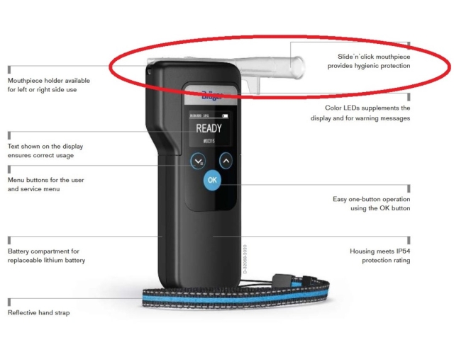Embouts pour Alcotest Draeger "Glisser-Cliquer" SANS clapet anti-retour - embouts emballés individuellement.