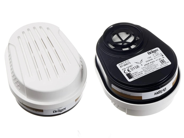 A2 - P3 R D : contre les gaz et vapeurs organiques (Point d’ébullition > 65 degré) et poussières et particules, par set. Étiquetage « R » : certifié réutilisable (plus d'une journée de travail). Marquage « D » : test de colmatage à la poussière de dolomite réussi.