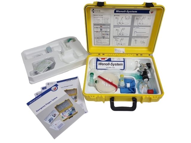 Le WS 100 est la valise d'oxygène d'urgence compacte de Wenoll, équipée d'une bouteille d'O2 de 2 litres et d'un détendeur CS 215.
