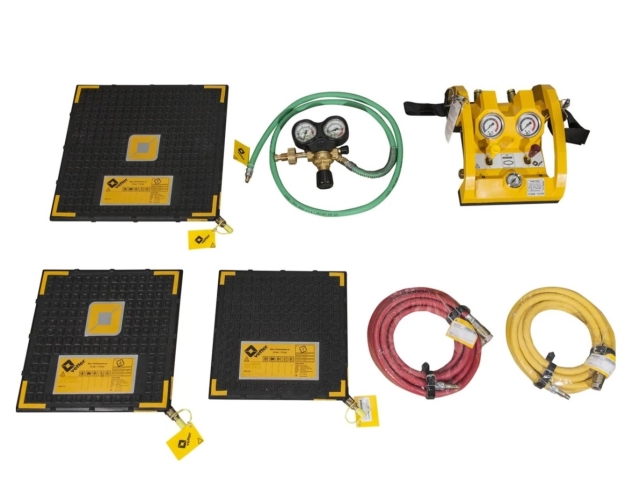 Le détendeur s'ajuste par paliers, avec une sortie supplémentaire de pression moyenne pour les systèmes à la demande en option. Le système se connecte aux masques ou à l'installation de recirculation de Wenoll grâce à un embout universel.