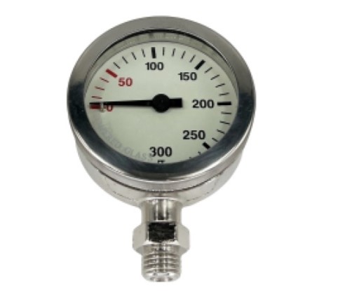 Manomètre sous-marin O² clean 52mm 0-300 bars boîtier laiton nickelé