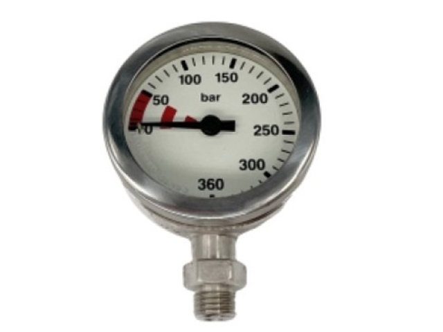 Manomètre sous-marin O² clean 52mm 0-360 bars boîtier laiton nickelé
